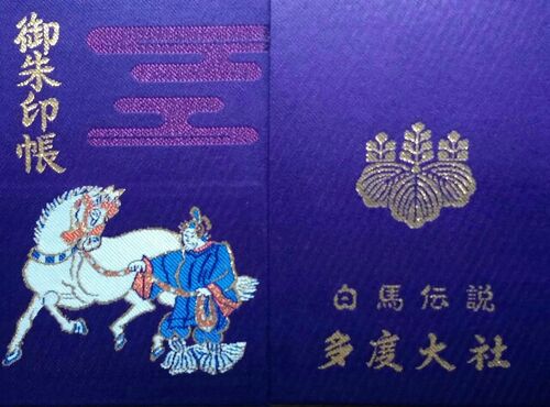 多度大社 三重県桑名市 のオリジナル御朱印帳です。 【大きさ】 11×16 通常サイズ 【紙質】 普通 北伊勢大神宮とも呼ばれる。白馬伝説、「上げ馬神事」などでも知られる。 俗謡に「お伊勢参らばお多度もかけよ、お多度かけねば片参り」とも詠われた。 Tado T…